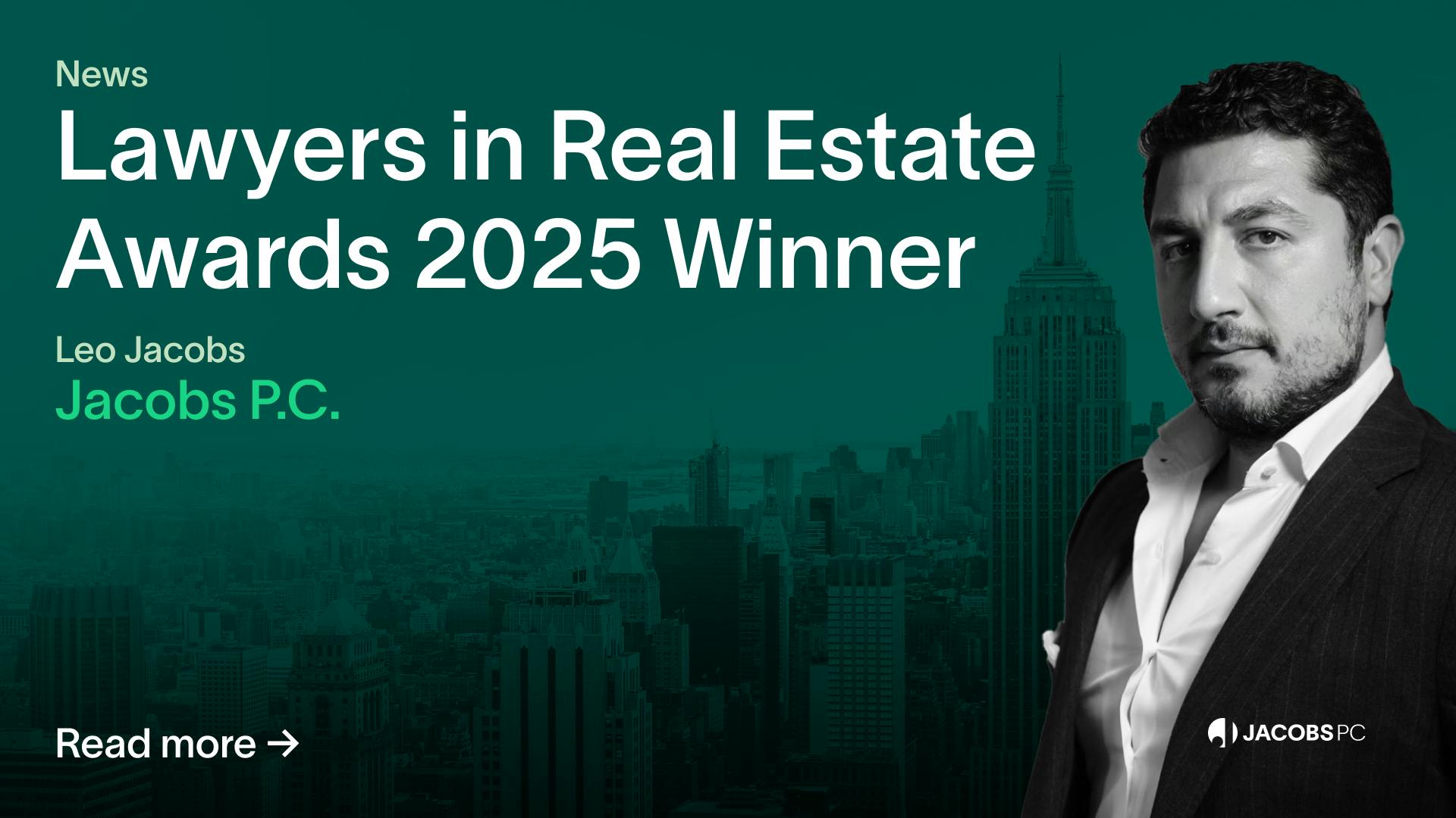 Leo Jacobs was honored in the New York & Tri-State Region, one of the most competitive legal environments in the country. The award reflects his significant impact on the real estate community and his continued commitment to protecting investors, developers, lenders, and businesses facing high stakes disputes.